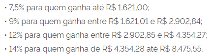 - Aplica-se 7,5% sobre a primeira parte do salário