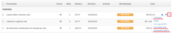 6 – Visualizar nota completa e realizar download do XML e DANFE;